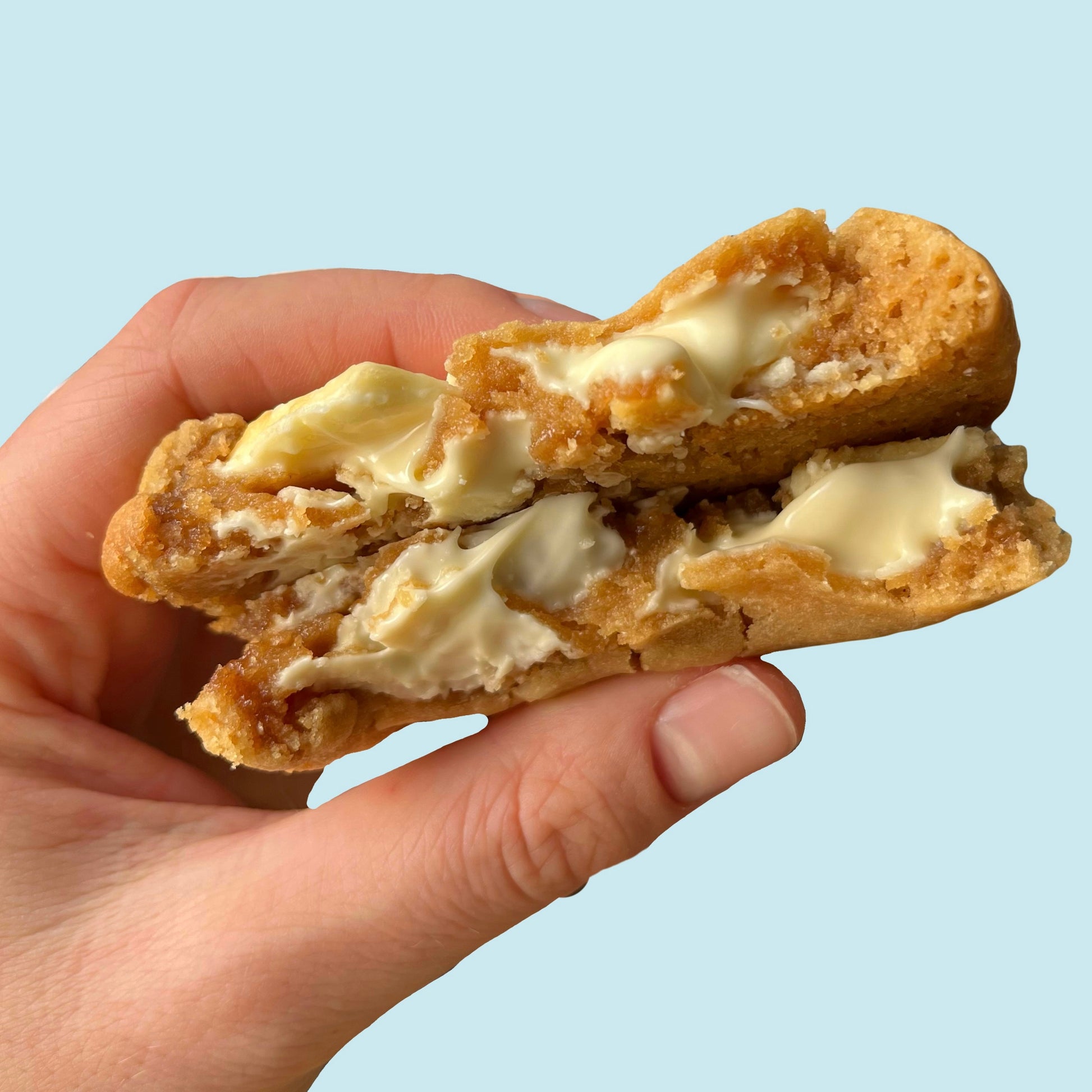 Pâte de cookie vanillée et au beurre salé, chocolat blanc et éclats de macadamia !